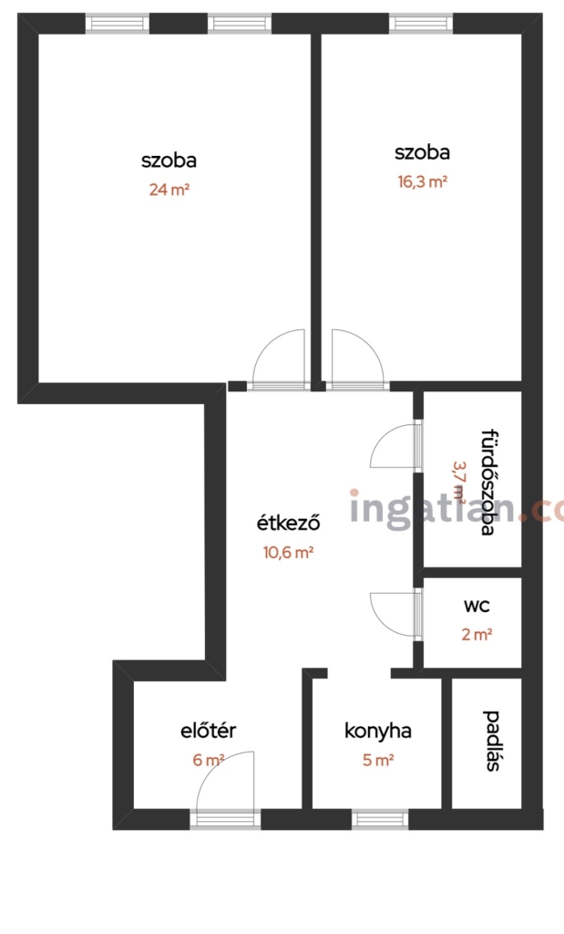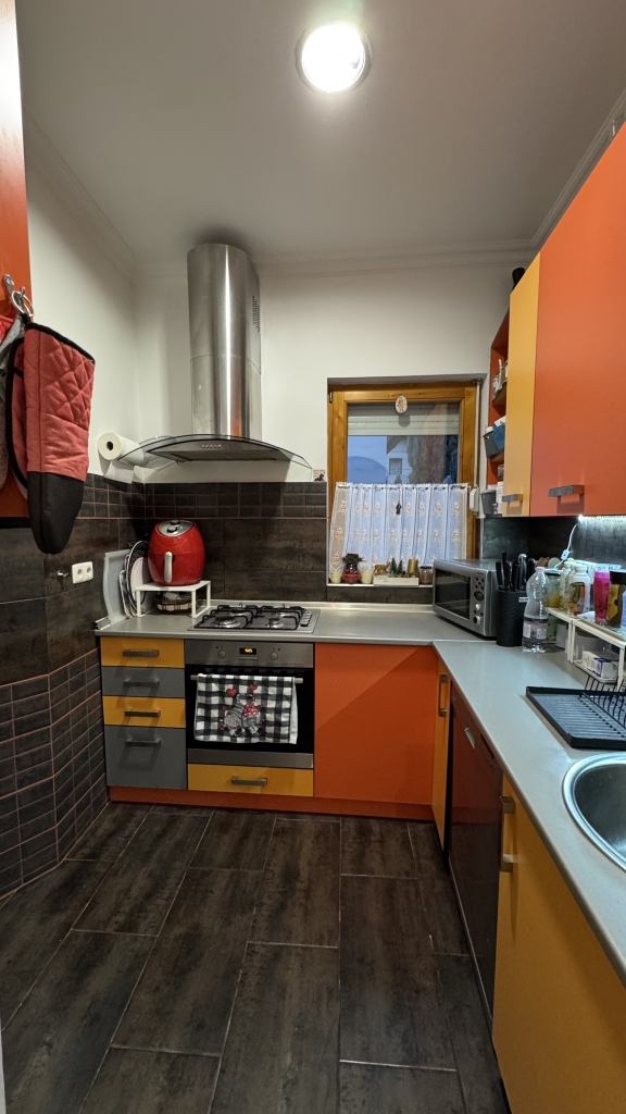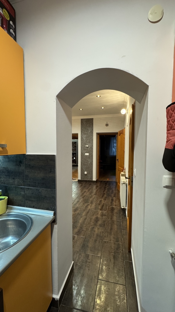 - konyha (5 m2) beéített, gépesített konyhabútorral