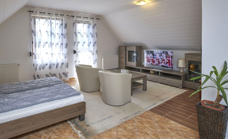 Im Obergeschoss befindet sich ein Büro sowie ein Gästeapartment mit separatem Zugang.