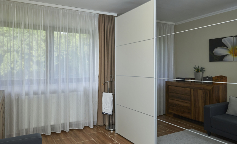 Az emeleti részen iroda, illetve vendégek fogadására alkalmas apartman lakás található, ami külön bejárattal is megközelíthető.