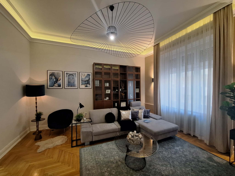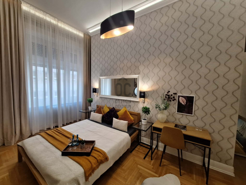 Kiadó egy 77 m²-es, 2. emeleti, utcai nézetű, 2 szobás, fiatalos, gyönyörűen berendezett és gépesített lakás.