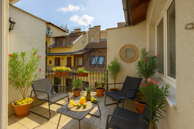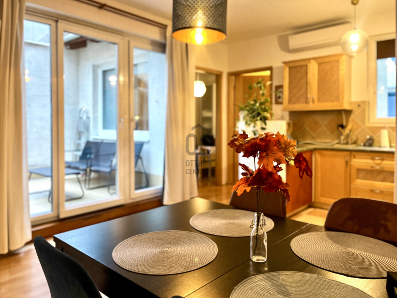 KIADÓ a VI. kerületben, a Dessewffy utcában egy felújított, BÚTOROZOTT, gépesített konyhával ellátott, TERASZOS lakás, ami egy LIFTes házban található.