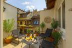 -A 6 m2-es teraszon kerti bútorok kaptak helyet.