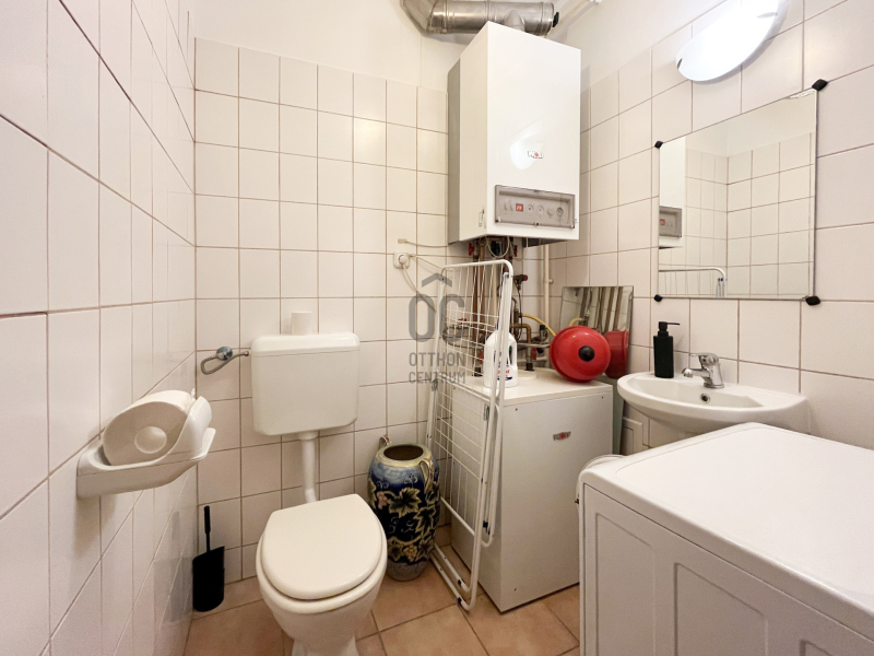 -A fürdőkádas, wc-s nagyfürdőszobán kívül az előszobában egy vendég wc-mosókonyha is található az ingatlanban, illetve a kényelmes méretű előszobában egy tárolóhelyiség is.