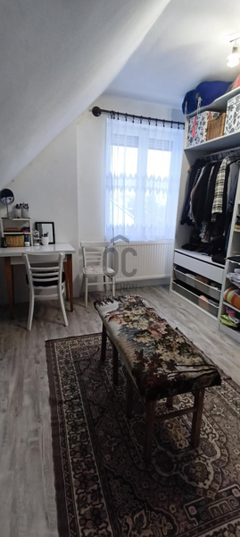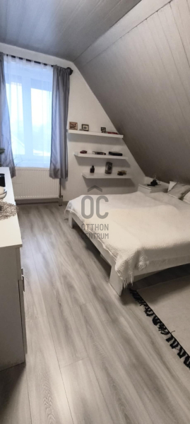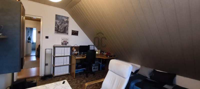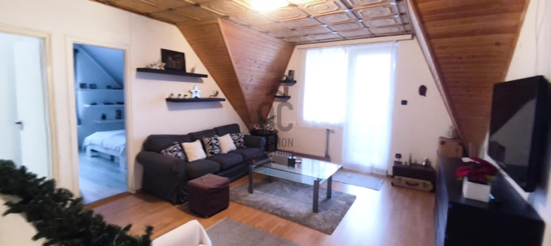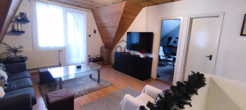 A tetőtér beépített, 4 szobára, fürdőszobára, és egy lakóelőtérre oszlik, innen kiléphetünk az 5,4 nm-es erkélyre.