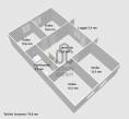 A földszint 2 szoba, fürdőszoba, külön mellékhelyiség, előszoba, konyha-étkező, kamra, tároló elrendezésű, a nagyméretű étkezőből kijárat nyílik a 20 nm-es fedett teraszra.