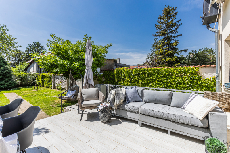 Az ingatlan egyik KÜLÖNLEGESSÉGE a csodálatos NAPPALI az ELEGÁNS SYKORA KONYHÁVAL, amit a hatalmas üvegtáblás teraszajtókkal egybe lehet nyitni a GYÖNYÖRŰ TERASSZAL és a GONDOZOTT KERTTEL.