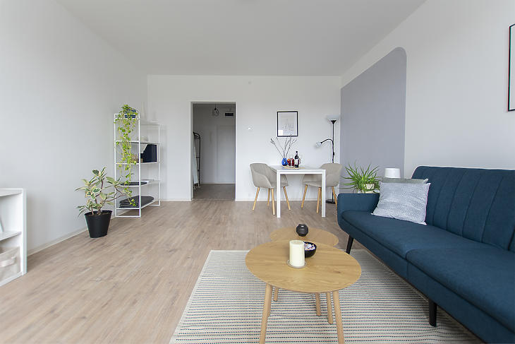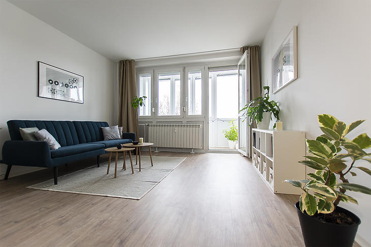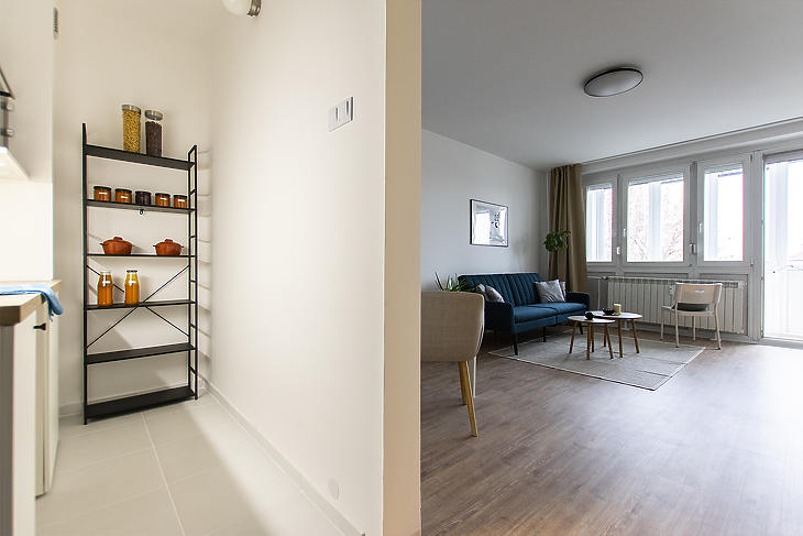 Eladó egy teljes körűen felújított, 35 m²-es lakás a 4. emeleten, dupla liftes épületben!