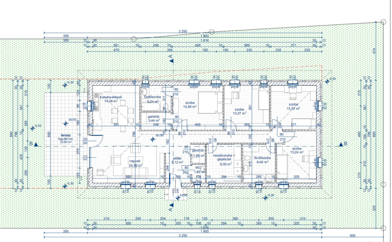 A ház praktikus elrendezésének köszönhetően négy külön nyíló szoba és egy tágas amerikai konyhás nappali biztosítja a kényelmes mindennapokat, miközben a korszerű műszaki tartalom alacsony fenntartási költségeket garantál.