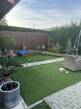 A kertbe elektromos kapun keresztül jutunk, ahol 2 személyautónak fedett beálló lett kialakítva. A hangulatos kert meghitt intimszférát teremt, melynek része egy tároló is.