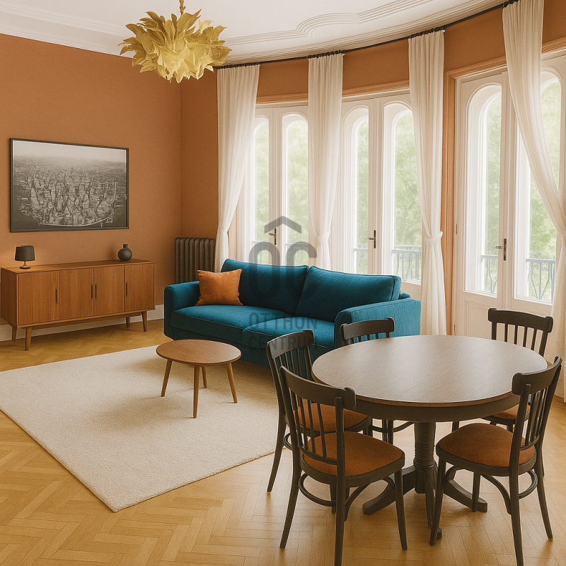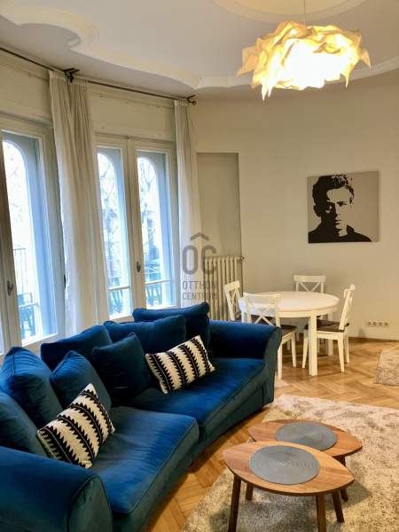 A 72 nm-es, 2 szobás, magasföldszinti otthon egy elegáns, patinás villaépületben kapott helyet, ahol mindössze hat lakás található. A tágas nappalit hatalmas ablakok teszik különösen világossá, így a tér barátságos, meghitt hangulatot áraszt. Ideális környezet a mindennapi pihenéshez vagy egy kellemes reggeli kávé elfogyasztásához.