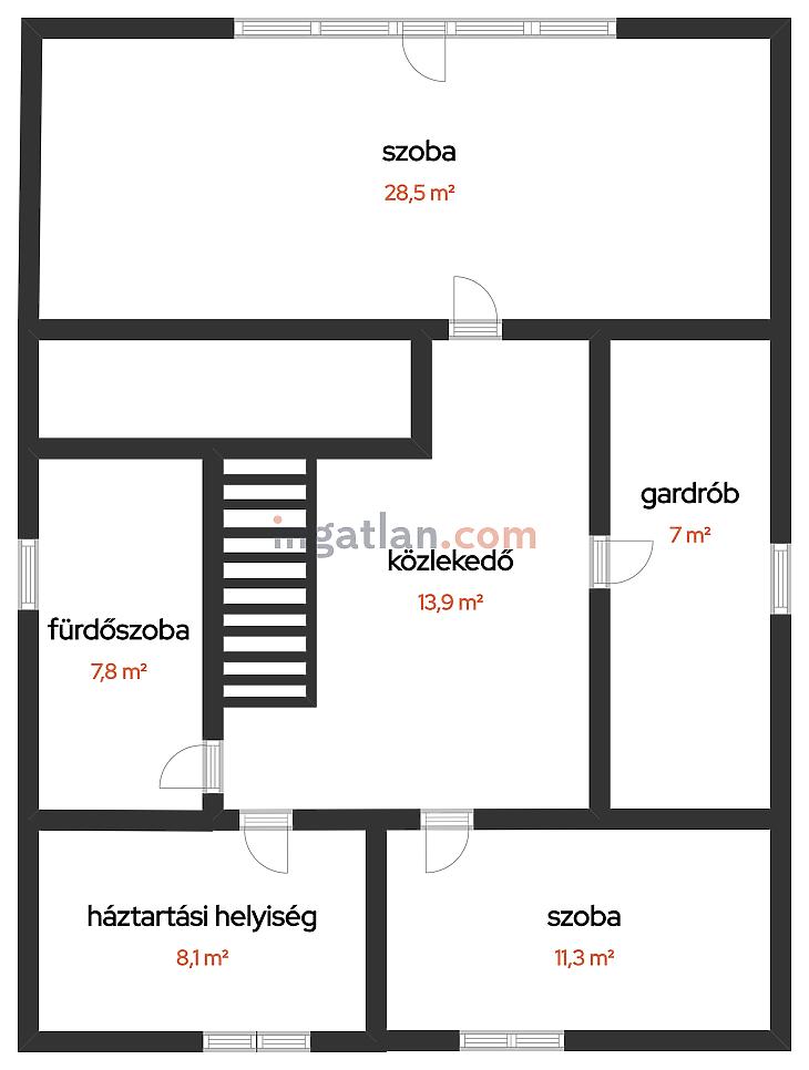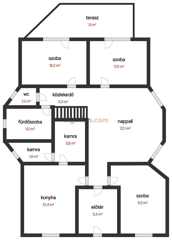 - A ház alapterülete 177,6 nm, a földszint 101 nm, a beépített tetőtér pedig 76,6 nm.