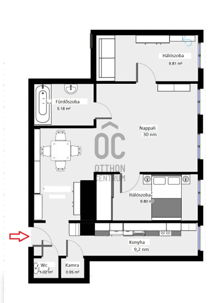 A lakáshoz egy saját 5 nm-es zárható tároló is tartozik.