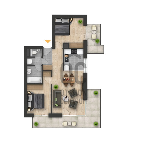 Az alaprajzi kialakítás kiemelkedően praktikus! A lakást tágas és világos terek jellemzik, a nappali konyharész kellően elszeparált és a 2 hálóteret tökéletesen elválasztja egymástól, megmarad az intimitás!