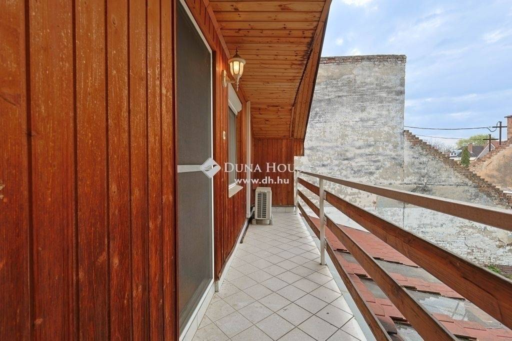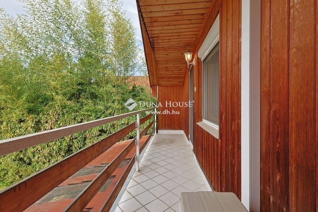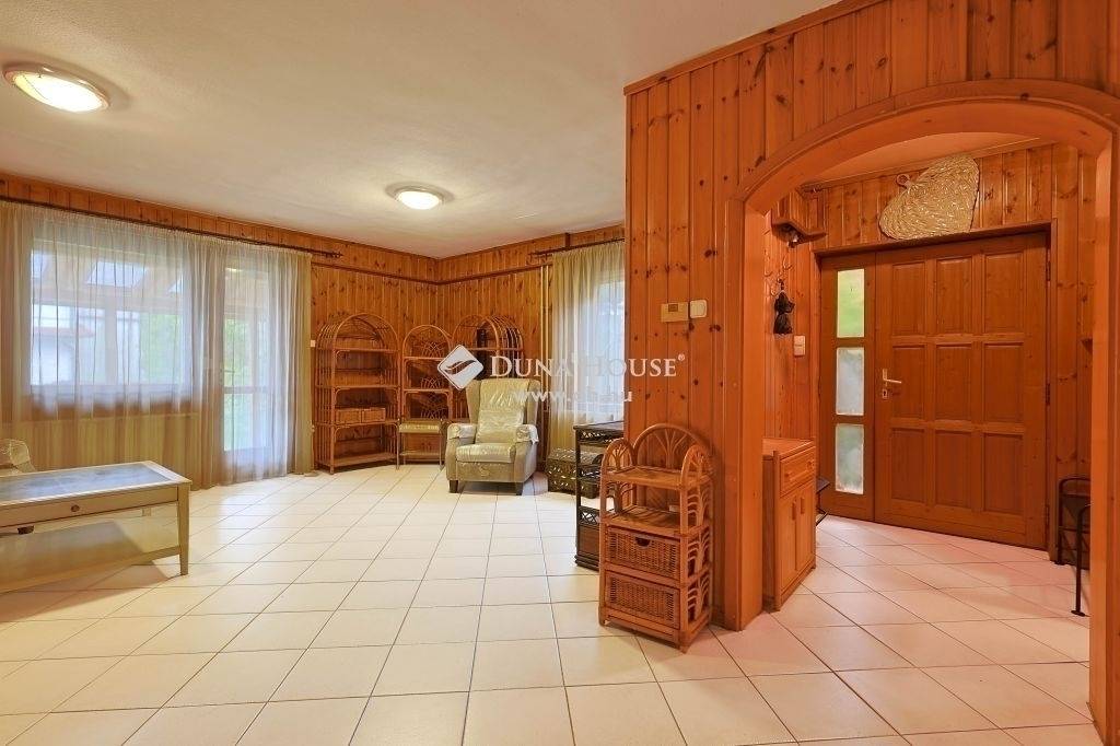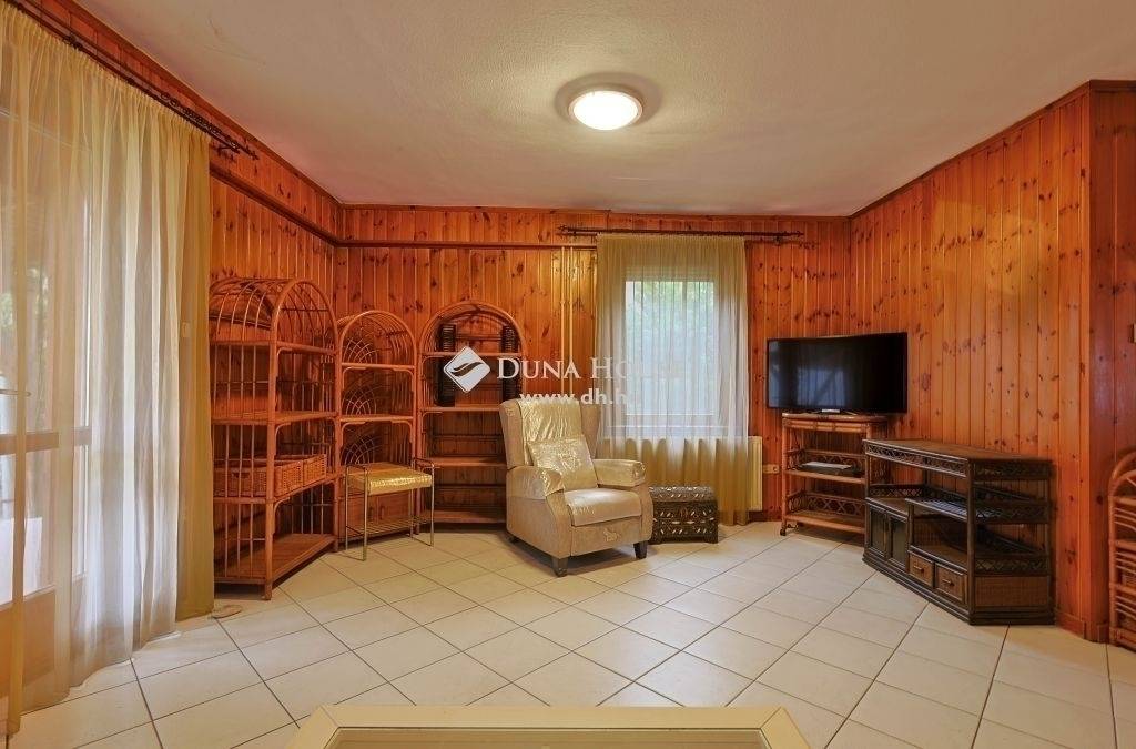 A körbejárható felépítmény az 1970-es években épült, a bal oldali telekhatártól és az utca fronttól is 2,90 m-re, a jobb oldali telekhatártól 3,35 m–re, beton alapra, tégla falazattal, földszint és emelet szintkiosztással, beton födémmel, cserép tetővel. Az ingatlan lakható, de igény szerint felújítandó. A nyílászárók építéskorabeli fa szerkezetek, már műanyag redőnnyel és részben szúnyoghálóval szerelve. A földszinten minden helyiség kerámia lappal burkolt, az emeleten található, külön-nyíló szobák aljzata valódi, ragasztott, fa parkettával fedett. A szobák saját tárolókkal és terasszal is rendelkeznek. Az ingatlan minden helyiségének belső falfelülete lambériával borított. Az emeleten a kertre néző szobában klíma berendezés növeli a komfortérzetet. A fűtésről és a használati meleg-víz ellátásról FÉG típusú gázkazán gondoskodik az emeleten villanybojler is üzemel. A hőleadók lapradiátorok. A nappaliból érhető el a fedett terasz és a kert is, mely tökéletes helyszíne lehet a családi rendezvényeknek.
