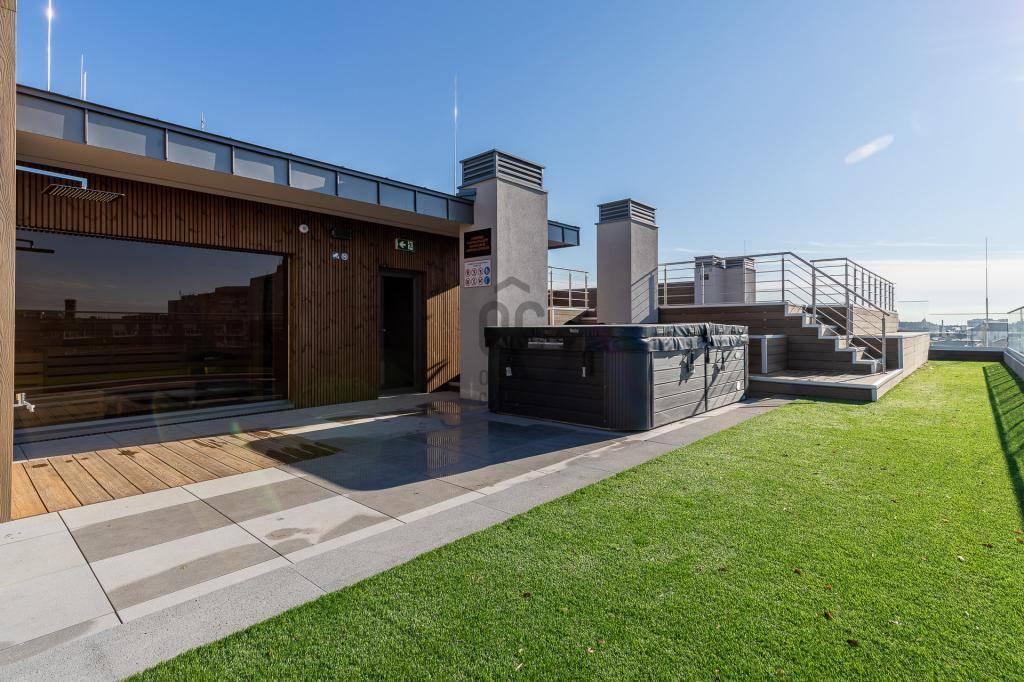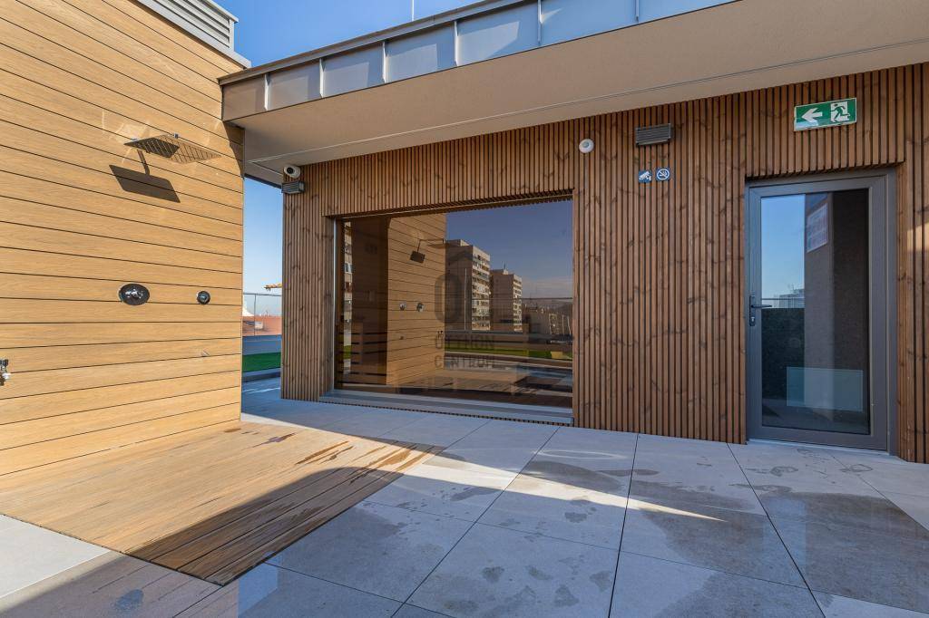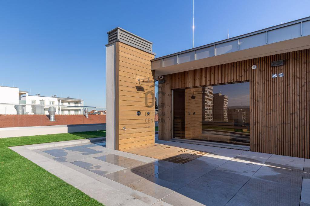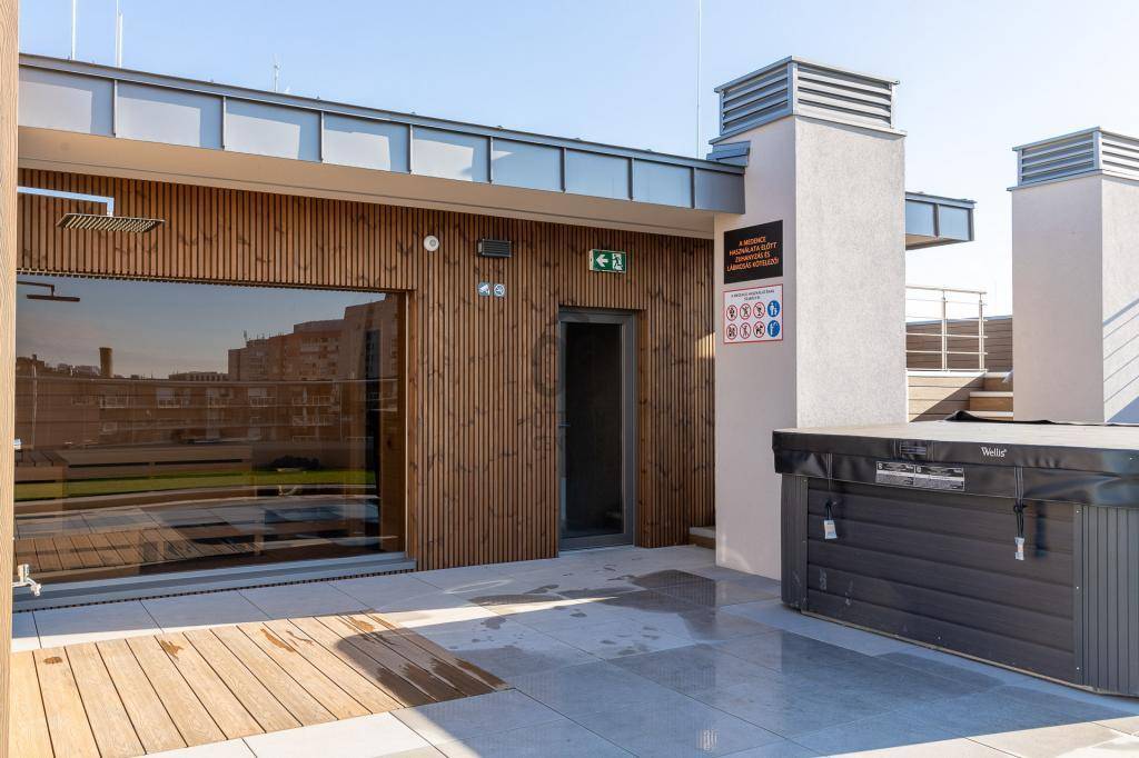 Wellness-szolgáltatások – a ház lakói számára tetőtéri medence, jacuzzi, szauna, napozóterasz, 0–24 recepció és mélygarázs áll rendelkezésre