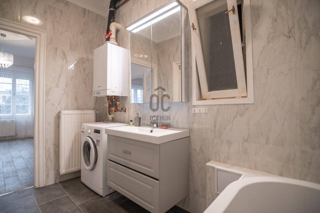 A felújítás során minden az ingatlan helyisége új hidegburkolatot, víz- és villanyvezetékhálózatot és új szanitereket kapott. A teljes fűtésrendszer is felújítására került, új radiátorokkal, a melegvízről és a fűtésről pedig kondenzációs kazán gondoskodik.