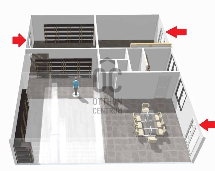 Az ingatlan három külön bejárattal rendelkezik, így szuperül variálható többféle funkcióra is. A terek világosak, jól kihasználhatók, a kényelmet pedig két fűtő-hűtő klíma adja. A nagy kirakatfelület extra figyelmet hoz – tökéletes láthatóság gyalogosoknak és autósoknak egyaránt.