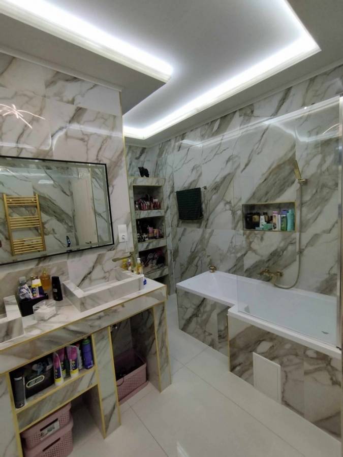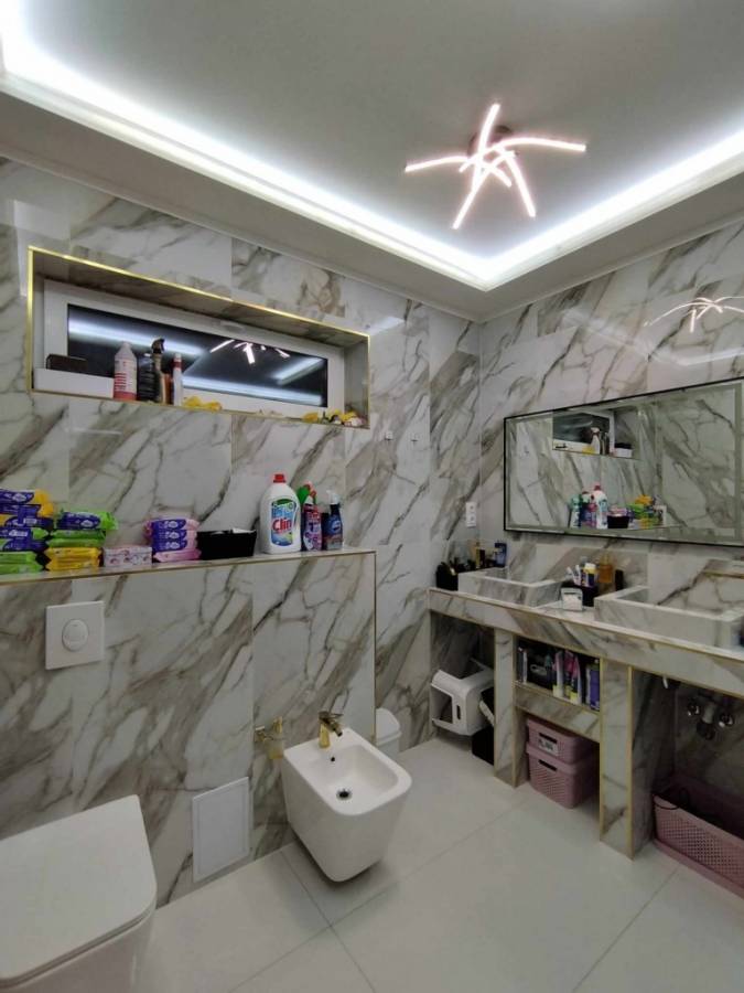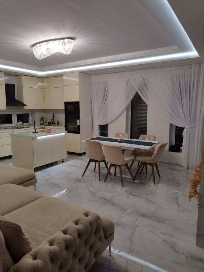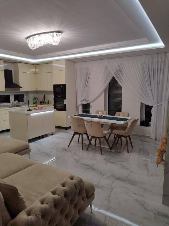 A ház belső kialakítása minimalista, modern stílusú, amely a prémium kivitelezésnek köszönhetően minden igényt kielégít. A tágas nappali világos és barátságos légkört teremt, ahol a LED hangulatvilágítás még inkább fokozza a kellemes atmoszférát. Az amerikai konyhás elrendezés tökéletesen megfelel a mai fiatalok elvárásainak, hiszen a közösségi terek így egybeolvadnak, lehetővé téve a baráti összejöveteleket vagy családi vacsorákat.