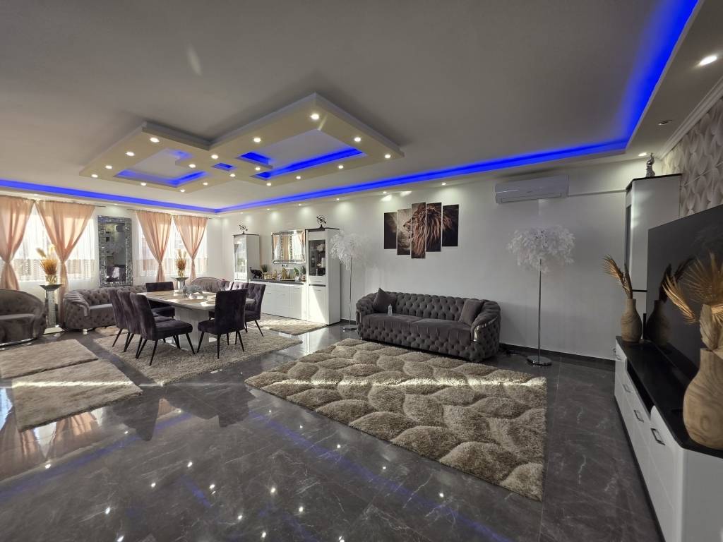 Elrendezése: előszoba, közlekedőből nyíló 3 db hálószoba (15.78 m2 – 12.22 m2, 12.01 m2), fürdő (wc, dupla mosdó, elektromos törölköző szárítós radiátor, tágas zuhanyzó illetve víz és csatorna kiállás sarokkád elhelyezéséhez), gépészeti helyiség, amerikai konyhás nappali étkezővel (47.52 m2), fedett terasz kapcsolattal (21.43 m2). Az ingatlan belső hasznos nettó alapterülete 127.11 m2.