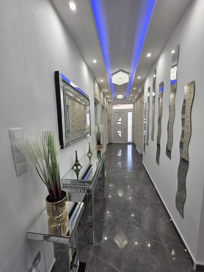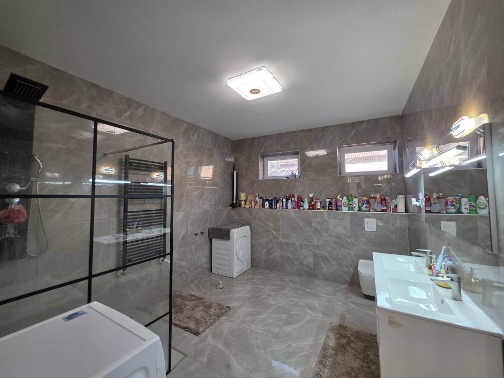 Műszaki tartalma: beton alapon fekvő B 30-as TÉGLA főfalak, 10 cm-es homlokzati szigeteléssel. Fa födémes, a tető mediterrán jellegű betoncseréppel borítva, 20 cm-es kőzetgyapot födémszigeteléssel. Az ingatlan összközműves, villany hálózata 3 X 16 A. Fűtése gázcirkó kazánról működik, a szobákban lapradiátoros hő leadással, a többi helyiségben padlófűtés biztosítja a meleget (a nappaliban plusz hűtő-fűtő klíma található). Nyílászárói fehér színű 3 rétegű műanyag ablakok. Szaniterek, burkolatok letisztult színvilágot képviselnek, igényes kivitelezésűek. Az ingatlan kifizetését követően azonnal költözhető, a nap körbesüti, így a nap minden szakaszában szép világos, fényes. Ide már csak be kell költözni!