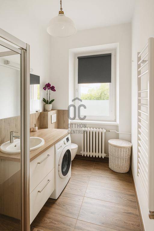A 72 nm-es, 2 szobás, magasföldszinti otthon egy elegáns, patinás villaépületben kapott helyet, ahol mindössze hat lakás található. A tágas nappalit hatalmas ablakok teszik különösen világossá, így a tér barátságos, meghitt hangulatot áraszt. Ideális környezet a mindennapi pihenéshez vagy egy kellemes reggeli kávé elfogyasztásához.