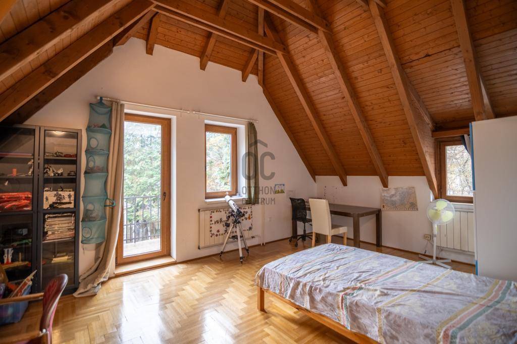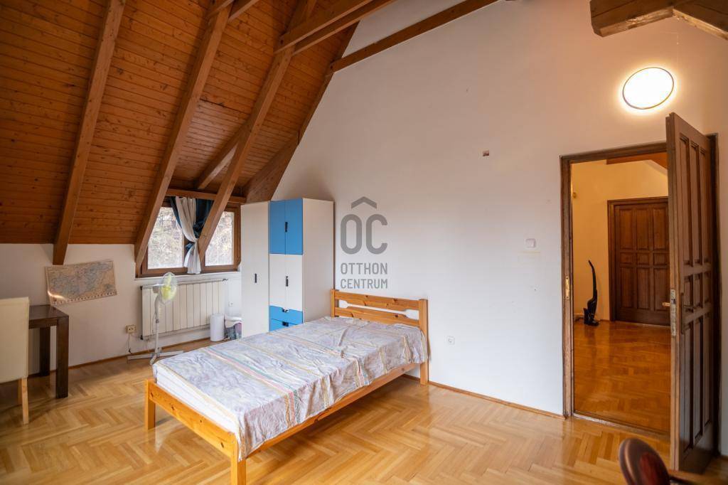 Eladó családi ház ritka dupla telken (1427 m²) Máriaremetén, a II. kerület egyik legjobb részén. A ház kiváló szerkezeti állapotban van, 1990 körül épült tömör téglából, vastag falakkal. 2016-ban teljeskörű felújításon esett át: új szigetelés, 3 rétegű műanyag nyílászárók, belső felújítások, pince is megújult.