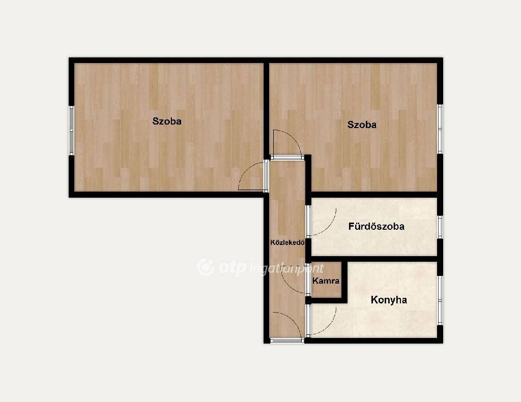 Az ingatlan helyiségei: 2 szoba, konyha, fürdőszoba, kamra, valamint saját tároló is tartozik hozzá.