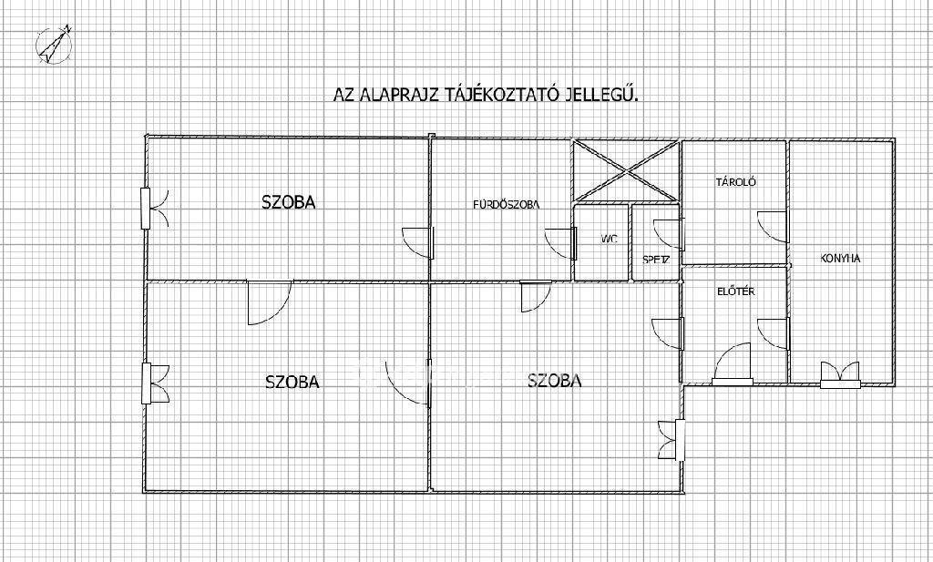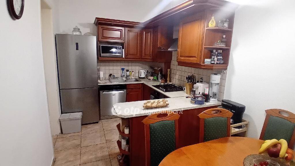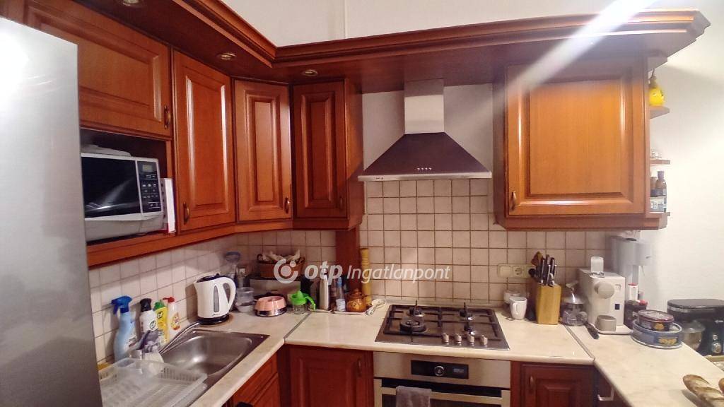 A lakásban három nagy szobából kettő az ucára, egy az udvarra néz. A fürdőszobája is méretes, kád és tusoló is található benne. A WC külön bejáratú. Jól felszerelt konyhája egyben van az étkezővel. A konyhából egy nagy kamra nyílik, amiből még egy kis spejzba jutunk. A fűtést gáz-cirkó kazán biztosítja. Négyméteres belmagassága miatt kiválóan galériázható.