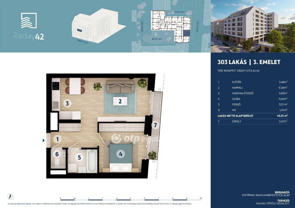 Kérjen részletes tájékoztatást a projektről és az aktuálisan elérhető lakásokról a Ráday 42 projektben.
