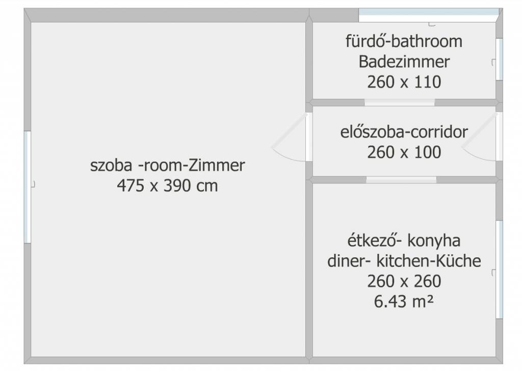 1 szoba 1 konyha, fürdő, előszoba.