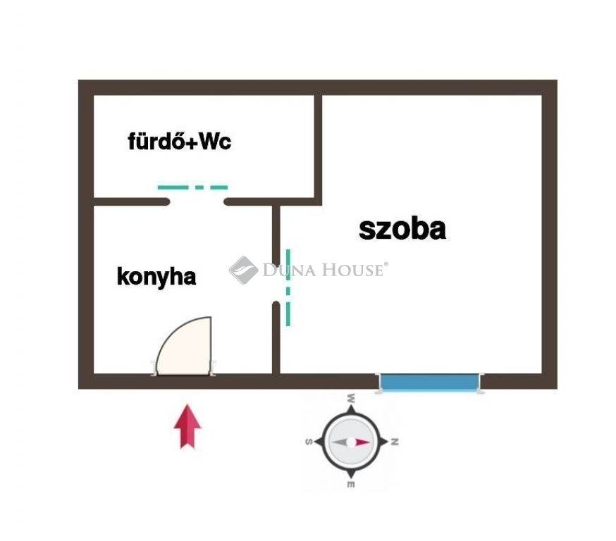 A napfényes K-i tájolású lakás 27 m2-es: konyha, fürdőszoba, szoba helyiségekből áll. Még senki nem lakott a lakásban a felújítás óta.