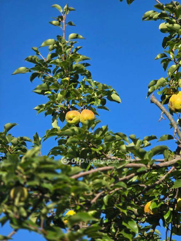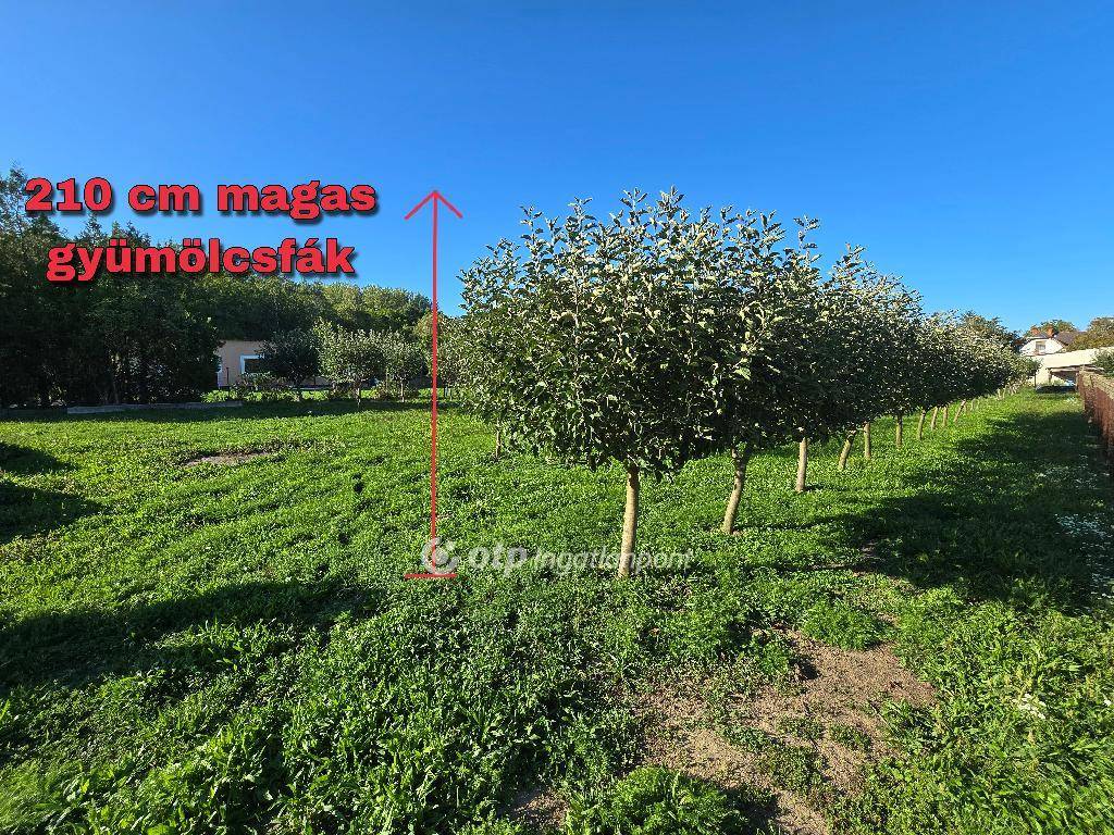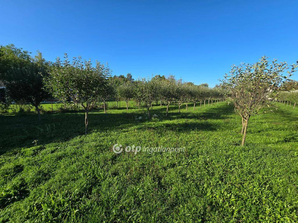 A telek hátsó részében, ahogy a képeken is látszik, gondosan telepített gyümölcsös található: öt sorban négyféle, körülbelül öt éves alma- és körtefák sorakoznak (Jonagold, Idared, Golden, valamint Vilmos és Bosc Kobak körte). Ezek a fák önmagukban is jelentős értéket képviselnek.