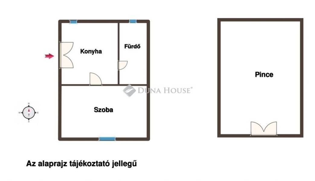 - az épület 40 nm, alápincézett, kialakításra került egy szoba, konyha, a fürdőszoba befejezése az új tulajdonosra vár.