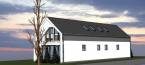 Homlokzat: törtfehér vékonyvakolat szürke díszítő elemekkel