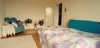 A szobák külön nyílnak, a fürdő és a WC egy helyiségben kapott helyet, üvegtéglával elválasztva. A konyhát ízléses konyhabútor teszi teljessé.