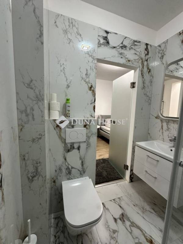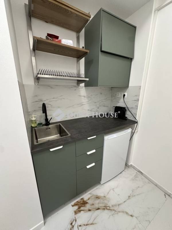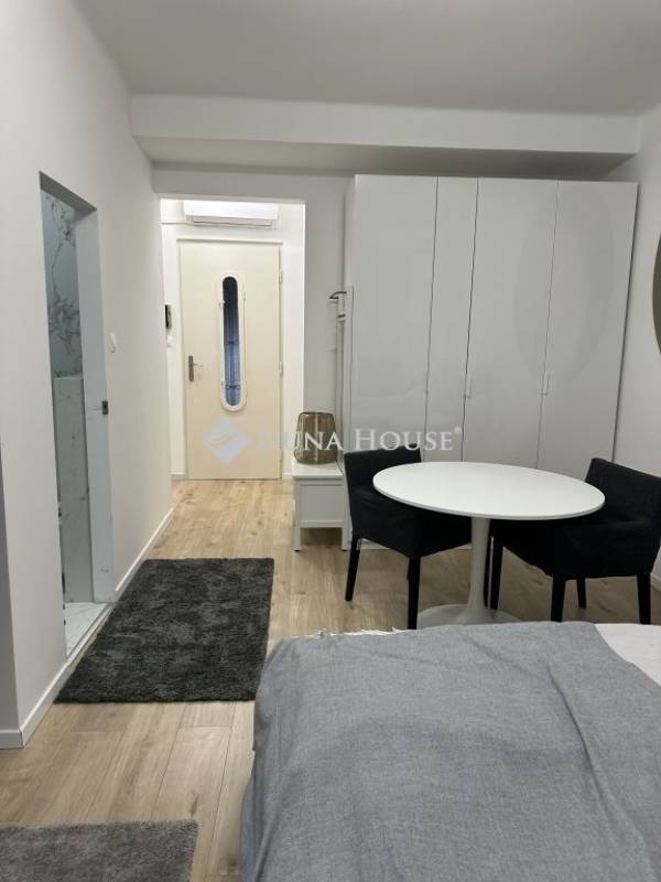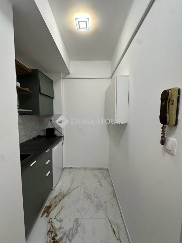 A lakás frissen felújított, modern burkolatokkal és letisztult belső kialakítással rendelkezik. A konyha teljesen gépesített, mosógép, hűtő, sütő és főzőlap is van, így az élethez minden szükséges berendezés adott. A fürdő és a többi helyiség is rendezett, jó állapotú, a lakás méretéhez képest nagyon praktikus elrendezésű, ideális egy fő vagy egy pár számára.