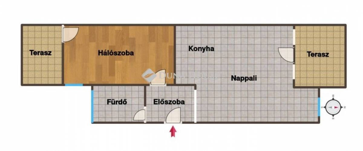 A teraszok felével számolva a lakás tulajdoni lap szerinti területe 62 m², amely szépen mutatja, hogy az ingatlan jól kihasználható, élhető terekkel rendelkezik.