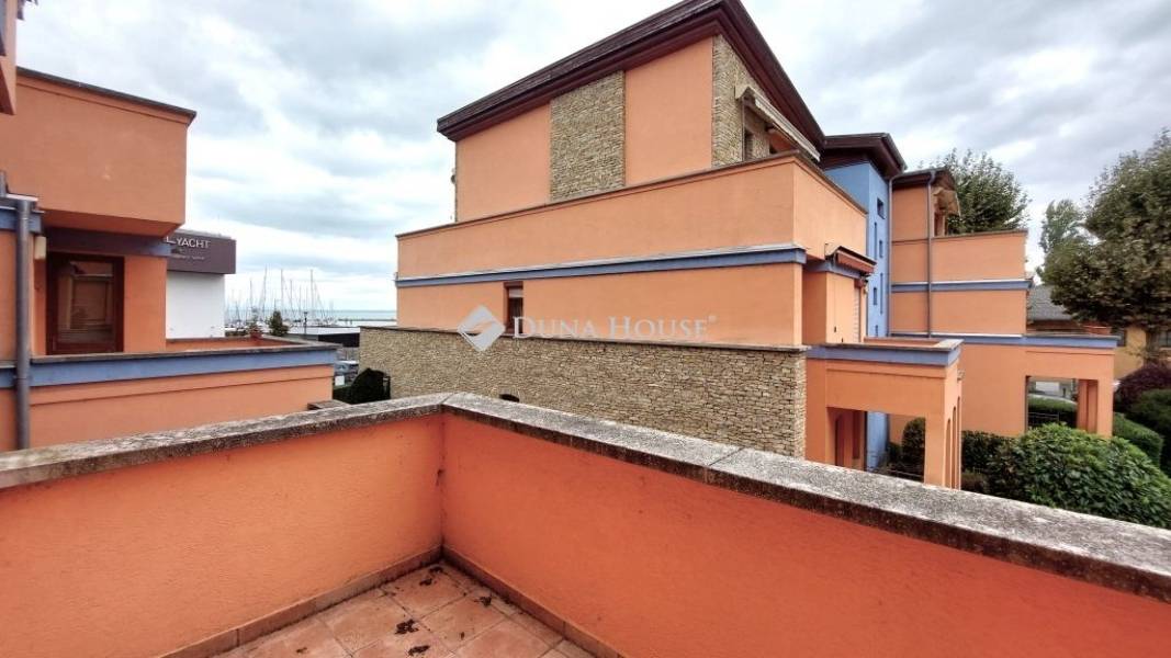 és egy 5,6 m²-es terasz a hálószobából, ahonnan kisebb panoráma nyílik a Balatonra és a kikötőre.