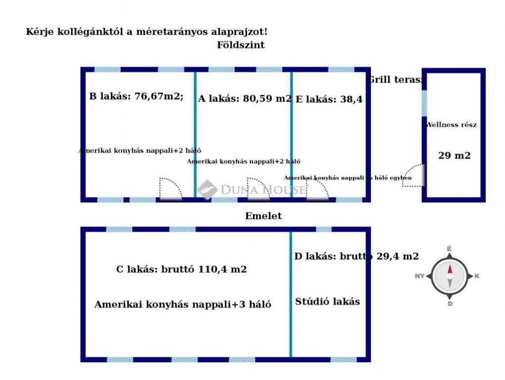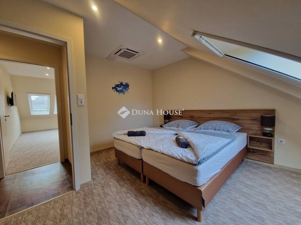 Baján Belvárosában, 5 apartmanból+wellness részlegből álló, bejáratott rezsimentesen, üzemeltethető apartmanház eladó. Az ingatlanban 2db földszinti amerikai konyha nappali+2 hálós (76 és 80m2), 2 db studiólakás (38 és 29 m2) és egy tetőtéri 3 hálós apartman (110m2) került kialakításra. Mindegyik apartman külön bejárattal, felszerelt konyhával és modern fürdőszobával rendelkezik. Az ingatlan 2020-ban teljes körű felújításon és átalakításon esett át: 10 cm homlokzati hőszigetelés, teljes tetőcsere 15 cm üveggyapot hőszigeteléssel, új 3 rétegű műanyag nyílászárók, teljes víz és villanyvezeték csere. Az ingatlanon 20kw napelem található, mely teljes körűen biztosítja a ház energiaellátását. A hőszivattyús klímás fűtés padlófűtéssel kombinált, a bojlerek is elektromosak, wifivel távolról vezérelhetők. Az ingatlanhoz egy 36,6 m2 nagyságú wellness rész, egy grillterasz, és autóbeállók is tartoznak. A vételár tartalmazza a beépített konyhabútorokat gépekkel együtt, a többi a bútorzat a napelemes rendszer megegyezés tárgya. Jelenleg is apartman házként üzemel, de hosszú távú kiadásra is kiválóan alkalmas, azonnal költözhető.