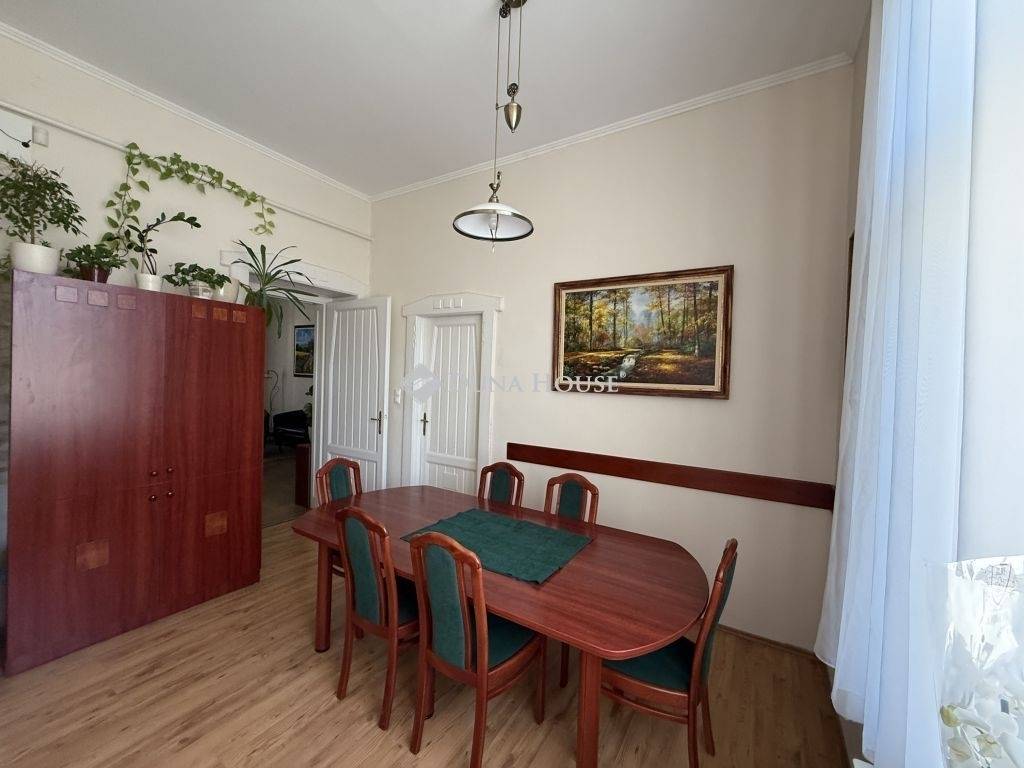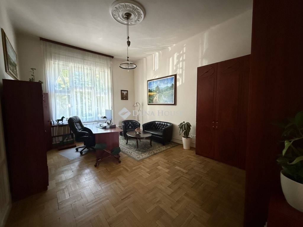 Eladó tágas, polgári lakás Székesfehérvár történelmi belvárosában kiváló elhelyezkedéssel, számos lehetőséggel!Székesfehérvár hangulatos, történelmi belvárosában, pár perc sétára a Városház tértől kínálunk megvételre egy ritkaságnak számító, 1. emeleti, 172 m²-es polgári lakást, amelyet nagyvonalú terek, klasszikus elegancia és modern kényelmi megoldások tesznek igazán különlegessé.A lakás egy rendezett, kis lakásszámú társasházban található, csendes környezetben a belváros minden előnyével, parkolási és rendezvényi gondok nélkül.A lakás főbb jellemzői:172 m²-es alapterület5 szoba + hall + étkező + előszoba + kamraFürdőszoba WC-vel + külön WCNagy belmagasság (3,60 m) klasszikus polgári atmoszféraGázkonvektoros fűtés a kb. 50 cm vastag falaknak köszönhetően rendkívül kedvező fenntartási költségekKlíma9 éve teljesen felújított villanyhálózatInternethálózat minden szobábanRiasztórendszerKét erkélySaját pinceParkolási zóna, de a ház előtt mindig van szabad helyHasznosíthatóság & lehetőségek:A lakás jelenleg irodaként működik, 12-14 fő számára ideális munkakörnyezettel. A kialakítása és mérete miatt azonban számos módon hasznosítható:Iroda vagy ügyfélforgalmas rendelőElegáns, nagy polgári otthonAirbnb / apartmanok kialakításaVendégforgalommal rendelkező üzleti ingatlanAz elrendezése igény szerint könnyedén alakítható.Elhelyezkedés & környezet:Kiváló infrastruktúra: a közelben éttermek, kávézók, üzletek, élelmiszerbolt, iskola, óvoda, a Piac tér, a Pláza, és minden fontos belvárosi szolgáltatás megtalálható.A tömegközlekedés néhány perces sétával elérhető.Hívjon bizalommal!
