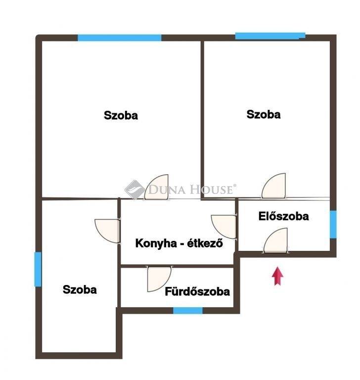 Az utcafronti két szoba ablaka műanyagra lett cserélve.
