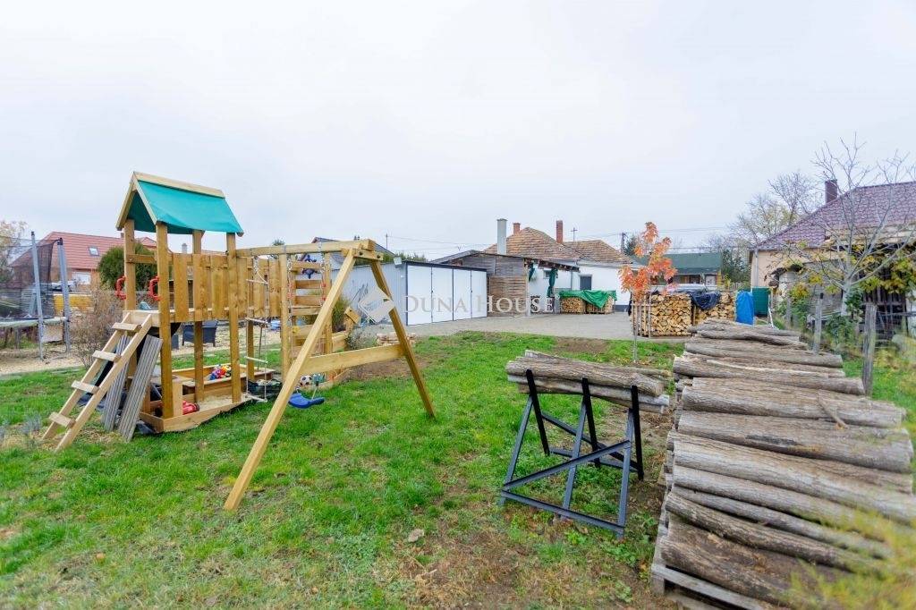 Győrtől mindössze 15 km-re, Győrszemere Szőlőhegy gyönyörű, nyugodt részén kínálunk megvételre egy teljesen felújított, 80 m²-es családi házat, hatalmas, 2196 m²-es telekkel!Az ingatlan remek választás mindazok számára, akik csendes, kertvárosias környezetben keresnek jól kihasználható, kényelmes otthont, nagy telekkel, sok lehetőséggel.A ház gondosan karbantartott és igényesen felújított, jelenlegi elosztása pedig praktikus és könnyen tovább alakítható igény szerint: előtér közlekedő kádas fürdőszoba wc-vel 3 szoba (jelenleg 2 szoba + nappali funkcióval) konyha háztartási helyiségA lakótéren túl több melléképület és extra funkció is szolgálja a kényelmet. A ház mögött fedett terasz, kazánház, tároló, valamint egy fűtött helyiség saját wc-vel található ez akár műhelynek, irodának, hobbihelyiségnek is ideális.A terasz folytatásában kapott helyet egy 2 állásos lemezgarázs, ami praktikus megoldás az autók biztonságos tárolására.A telek ezen része térkövezett, így könnyen rendben tartható, igényes és rendezett látványt nyújt. A kerítés teljesen körbezárja a területet, maximális biztonságot és privát életteret biztosítva.Felújítások és extrák: műanyag nyílászárók szúnyoghálóval teljesen új víz- és villanyvezetékek vegyestüzelésű kazán radiátoros hőleadókkal 2 klíma a gyors és gazdaságos hűtés/fűtés érdekébenA nagy, 2196 m²-es telek rengeteg lehetőséget rejt: akár gyönyörű díszkertet, veteményest, játszóteret, állattartást vagy további melléképületeket is könnyedén kialakíthat rajta az új tulajdonos a méret bőven engedi.Ez az ingatlan ideális választás azoknak, akik nyugalomra, tágas térre és hosszú távú lehetőségekre vágynak, mégis szeretnék Győr közelségét élvezni.Amennyiben Irodánk által kínált LAKÁS vagy bármely a kínálatunkban található CSALÁDI HÁZ, vagy TELEK felkeltette érdeklődését, hívjon a hét minden napján a megadott telefonszámon.