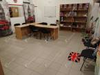 - a 34 m²-es rész egy tágas fogadóhelyiségből áll, a hátsó szakaszon pedig egy teakonyha található, amely egy korábbi fürdőszobából került kialakításra. Emellett rendelkezésre áll egy WC és egy közel 10 méter hosszú közlekedővel