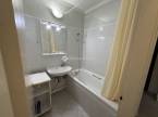 A nappaliból balra továbbhaladva egy kisebb folyosóra érünk, ahonnan a fürdőszoba nyílik, amely káddal felszerelt és itt található a wc is, szemben pedig a világos, nagy ablakos konyha található.