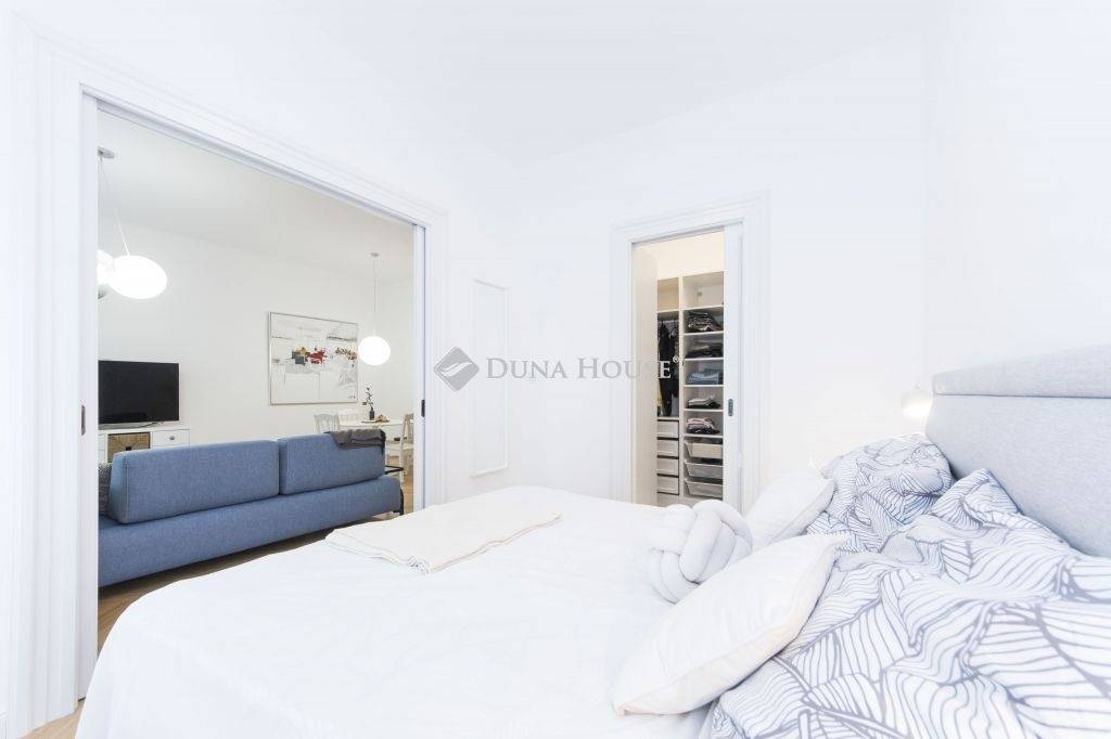 Egy igazi gyöngyszem a város szívében: 2. emeleti, liftes házban található, 2 szobás, minden igényt kielégítő, exkluzívan kialakított lakás, ahol minden részlet a kényelmet és az eleganciát szolgálja.A tágas, napfényes amerikai konyhás nappaliból csendes, belső utcára néző erkélyre léphetünk egy tökéletes hely egy reggeli kávéra vagy esti borozásra.A hálószobából nyíló gardrób rendszere pedig maximális rendezettséget és luxusérzetet ad.A lakás minden pontja átgondolt és magas minőségben megvalósított: egyedi, kézzel készített, teljesen gépesített konyha egyedi gyártású beltéri ajtók modern fürdőszoba: mosdó + WC + bidé + esőztető zuhanyzó külön háztartási helyiség (mosógéppel, beépített szekrényekkel) külön WC ablakos szellőzéssel padlófűtés, klíma hőszigetelt nyílászárók minden helyiségben elektromos redőnyök, riasztórendszer többpontos biztonsági bejárati ajtóAz autó parkolása is kényelmes: a közelben található garázsban, a bérleti díj részét képezi.Ez a lakás azoknak szól, akik szeretnének egy stílusos, nyugodt és romantikus városi otthont, ahol a minőség nem kompromisszum, hanem alap.Érdeklődésével keressen bizalomma, akár hétvégén is.