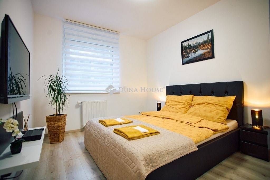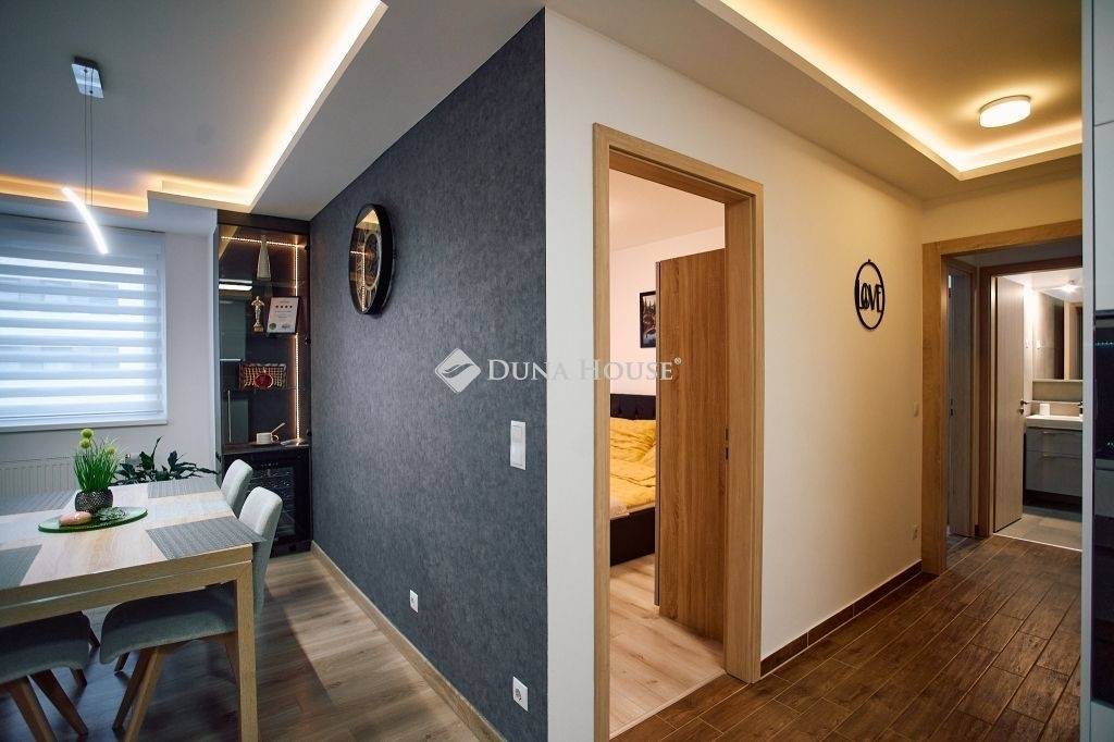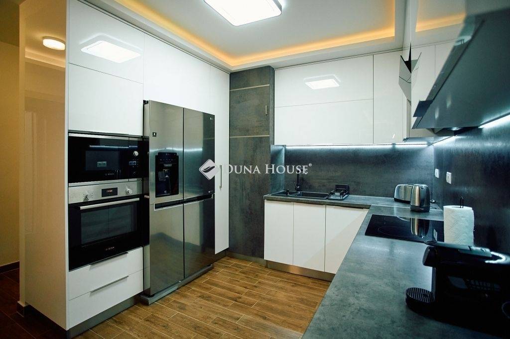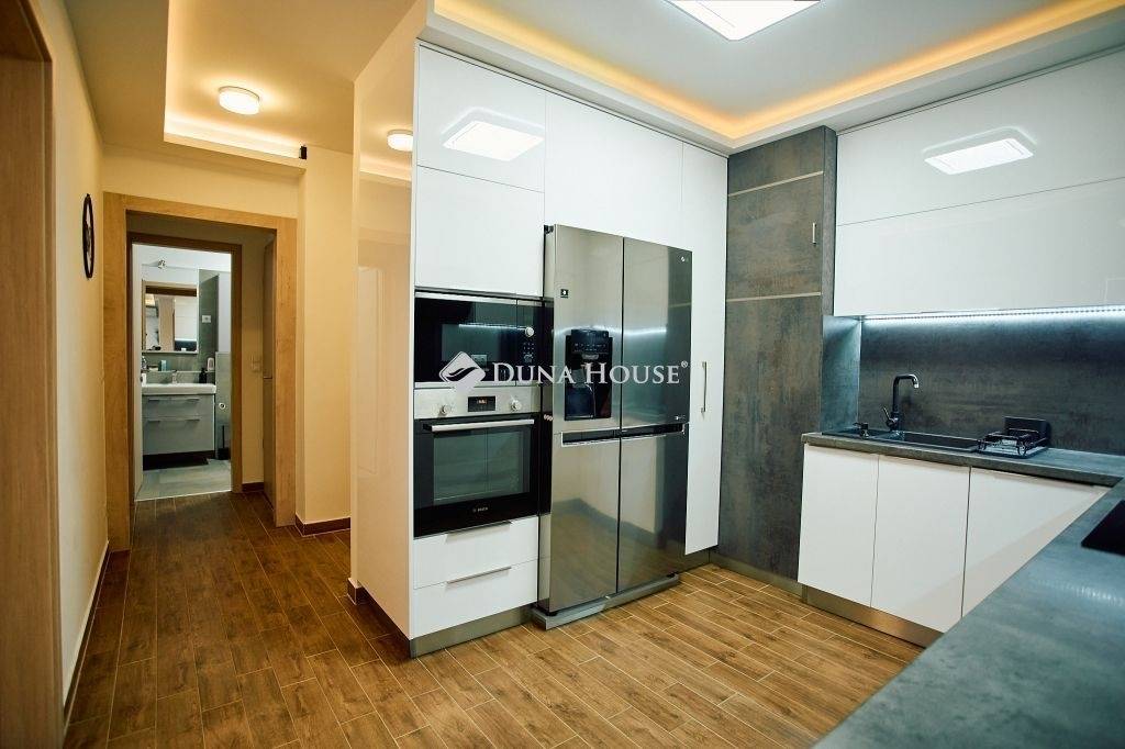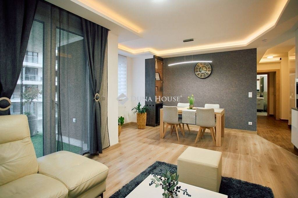 A világos nappalit a nagy ablakfelületek és a plafon mentén végigfutó hangulatvilágítás teszik igazán különlegessé.A három külön nyíló hálószoba tökéletes elrendezést biztosít családoknak vagy akár home office célra is.