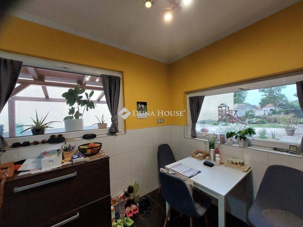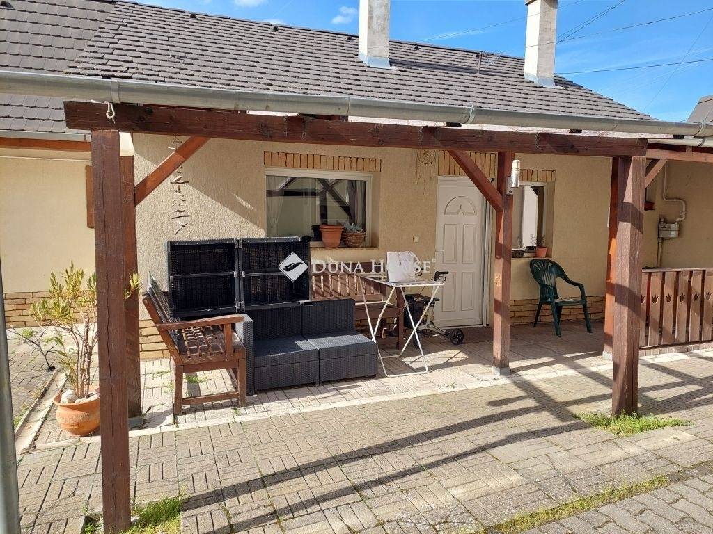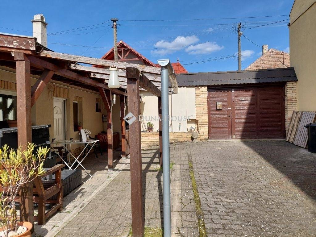 Az ingatlan áll ~ nappali, 2 szoba, fürdőszoba, konyha, garázs, tárolók, pince, fedett terasz.