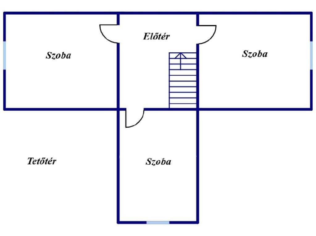 A tetőtér fa könnyűszerkezetes megoldással épült, mintegy 30 m2, ahol három különálló hálószoba és közlekedő található. Ideális családi használatra vagy vendégek fogadására.