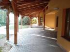 rengeteg örökzöld növénnyel, amely a Magas-Bakony panorámájával és a környék dombjainak látványával valóságos ?Privát Bakony? érzéssel csábítja az idelátogatókat. A főbejáratnál hatalmas fedett terasz várja a vendégeket, ahová időjárástól függetlenül teraszbútorokat lehet helyezni. Zárható kerékpártároló is található az épületben.