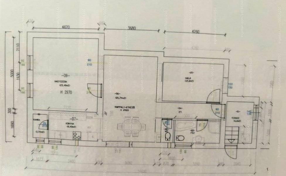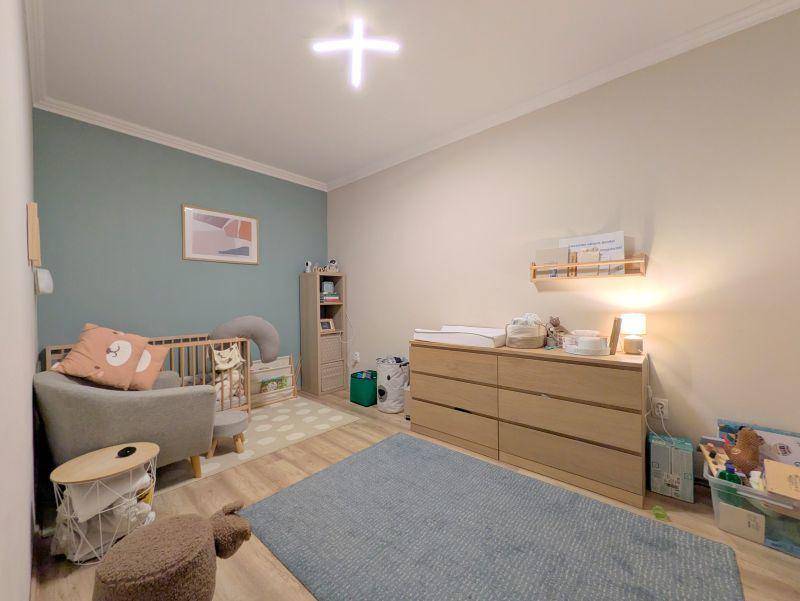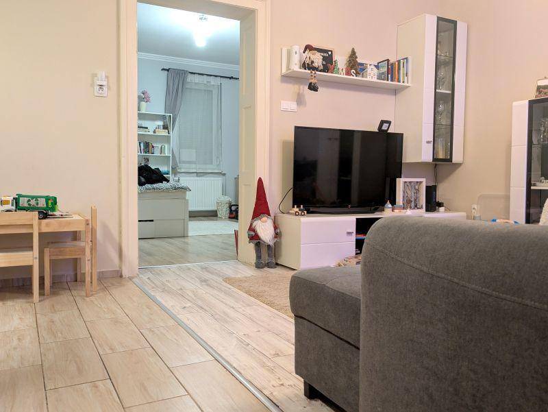 Helyiségek: Tágas előtér, napfényes amerikai konyhás nappali étkezővel, kamra, 2 hálószoba (melyből a nagyobbik igény esetén kettéosztható), fürdőszoba és két külön WC.